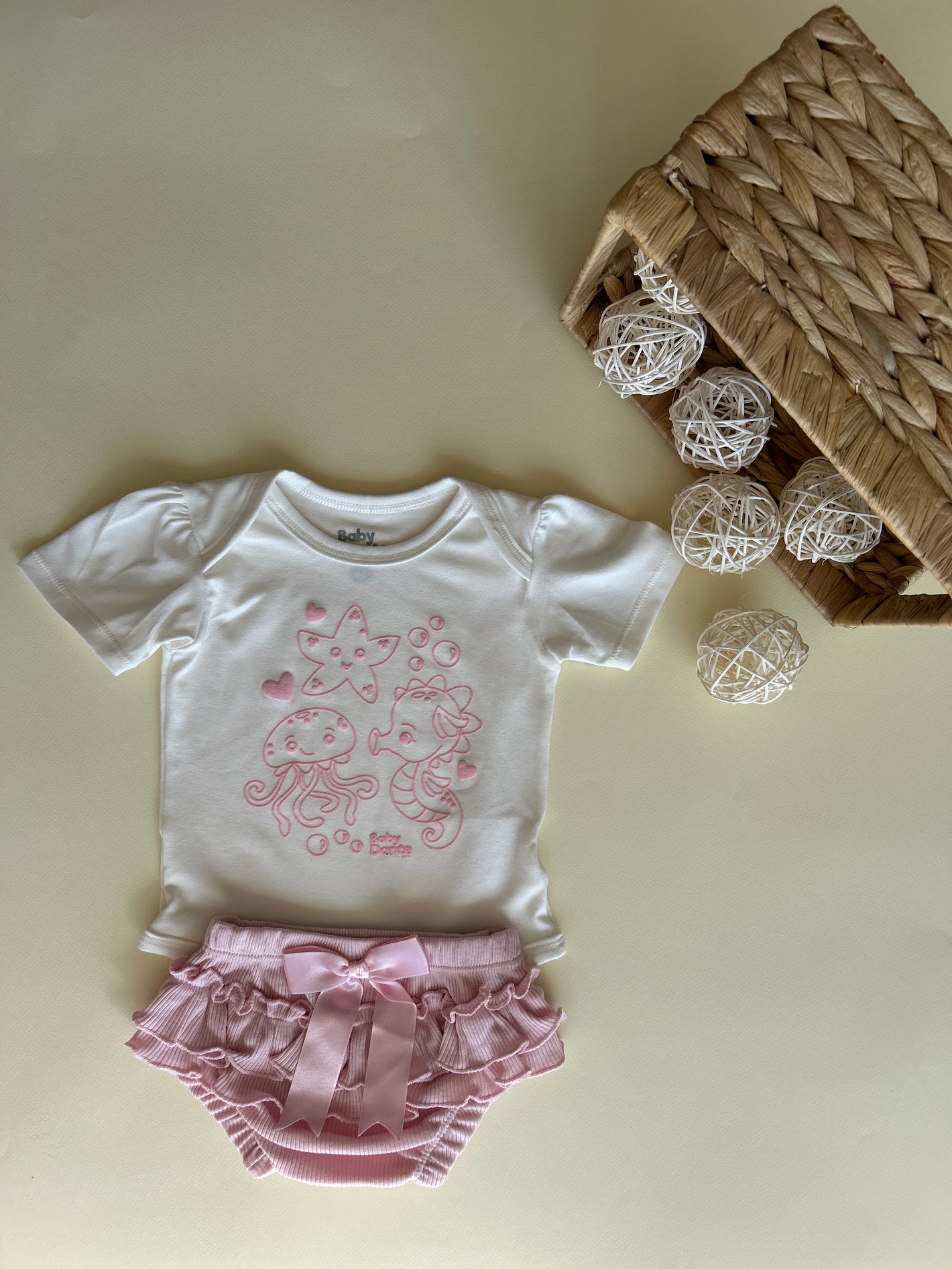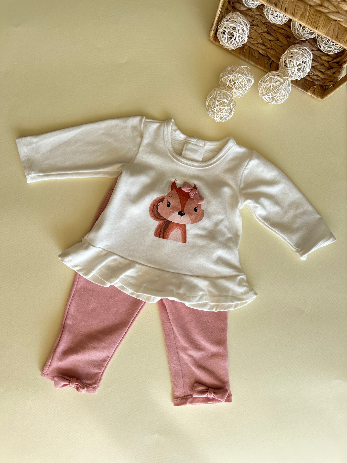 Un outfit lleno de dulzura pensado para los momentos más especiales de tu bebé. Este set incluye un body con un adorable estampado de koala, un pantalón suave y un turbante a juego que complementa el look con un toque encantador.