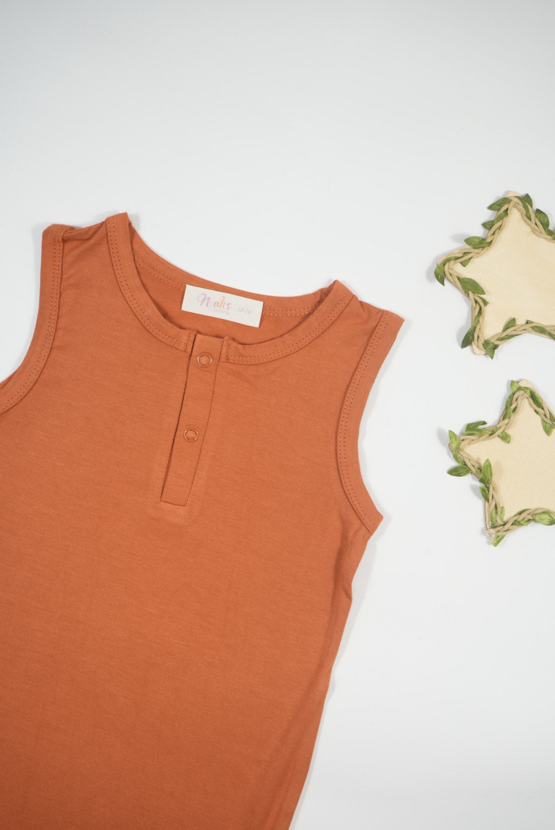 Nuestro Body Little Essentials está diseñado para brindar comodidad, frescura y libertad de movimiento durante todo el día. Disponible en una encantadora paleta de tonos tierra y suaves, este body sin mangas es ideal para climas cálidos o como primera capa en días frescos. Con botones delanteros y broches inferiores, facilita el cambio de ropa y pañal sin complicaciones.